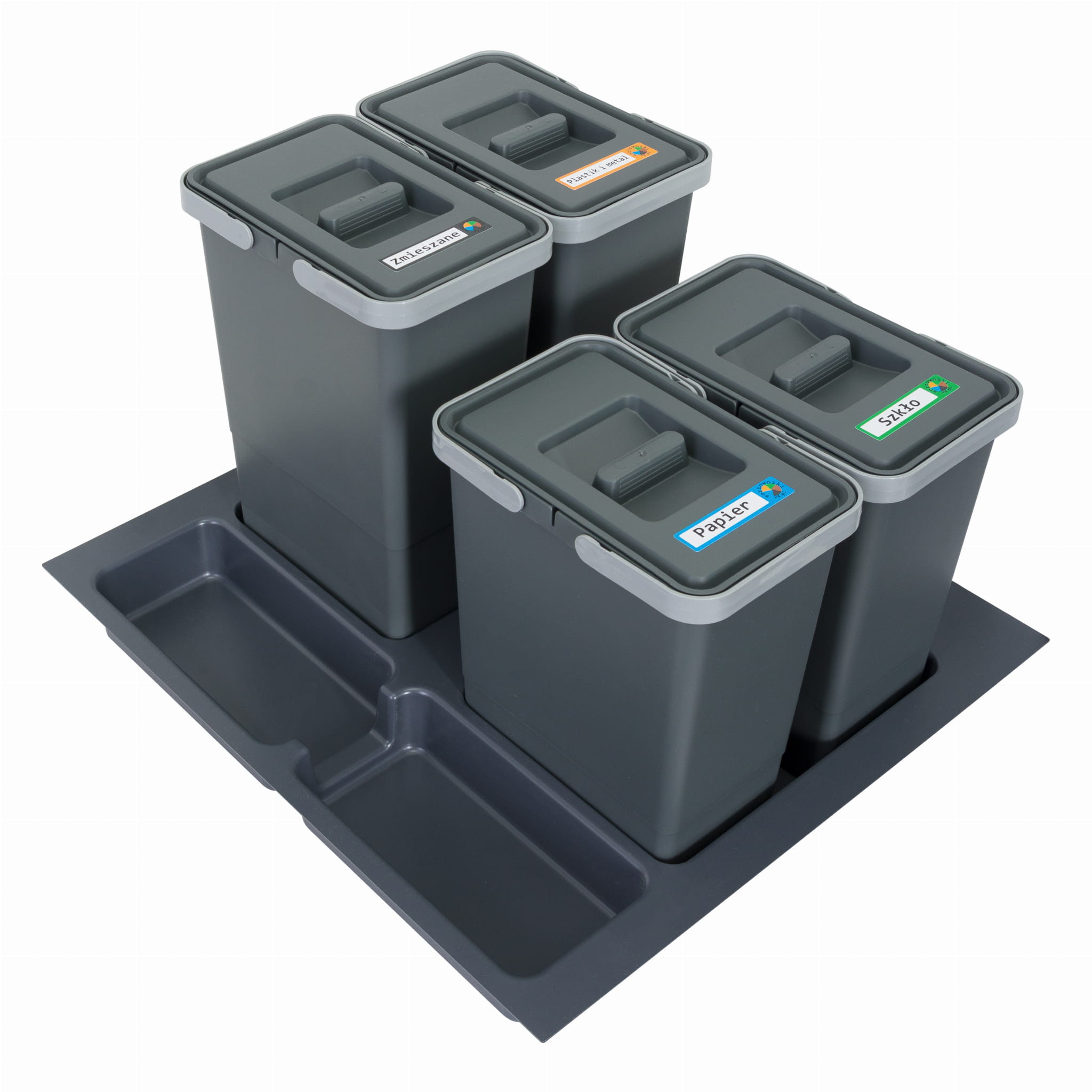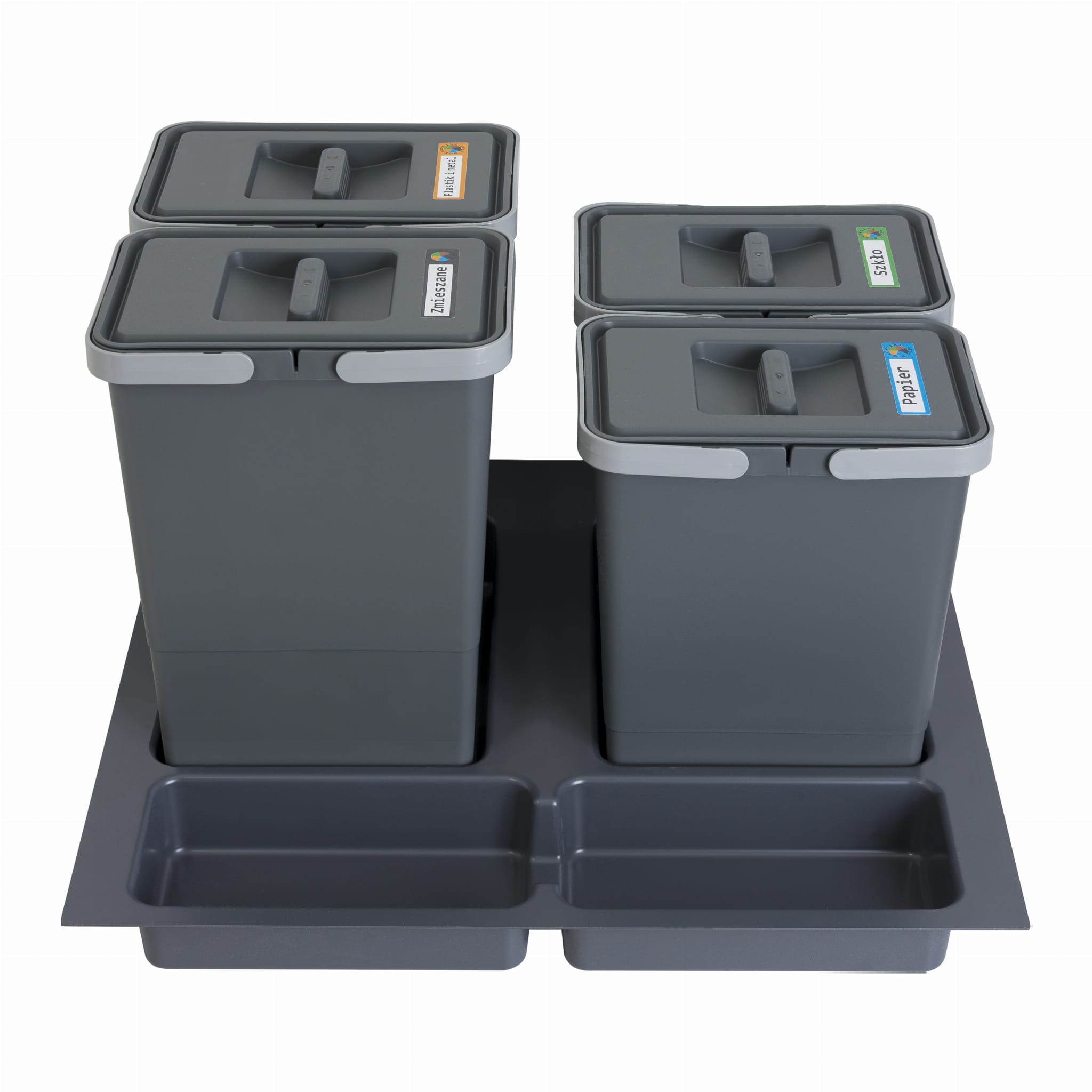 Ten sortownik odpadów pozwala na komfortową segregację w szufladach szafek kuchennych o szerokości 60 cm. W jego skład wchodzą cztery małe kosze do segregacji śmieci pod zlewozmywak – dwa 8-litrowe i dwa 7-litrowe, które stabilnie ustawione są na plastikowej tacce. Tacka ta dodatkowo wzbogaconej jest w dwa wbudowane w nią koszyki na ściereczki kuchenne i worki na śmieci. Kosze sortera na śmieci posiadają szczelne pokrywy, wytrzymałe uchwyty oraz nacięcia na powierzchni pozwalające na umieszczenie dwóch worków na śmieci.