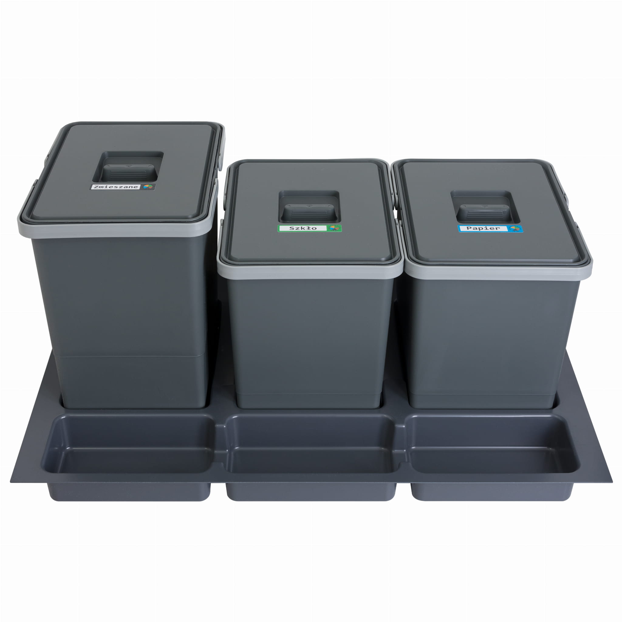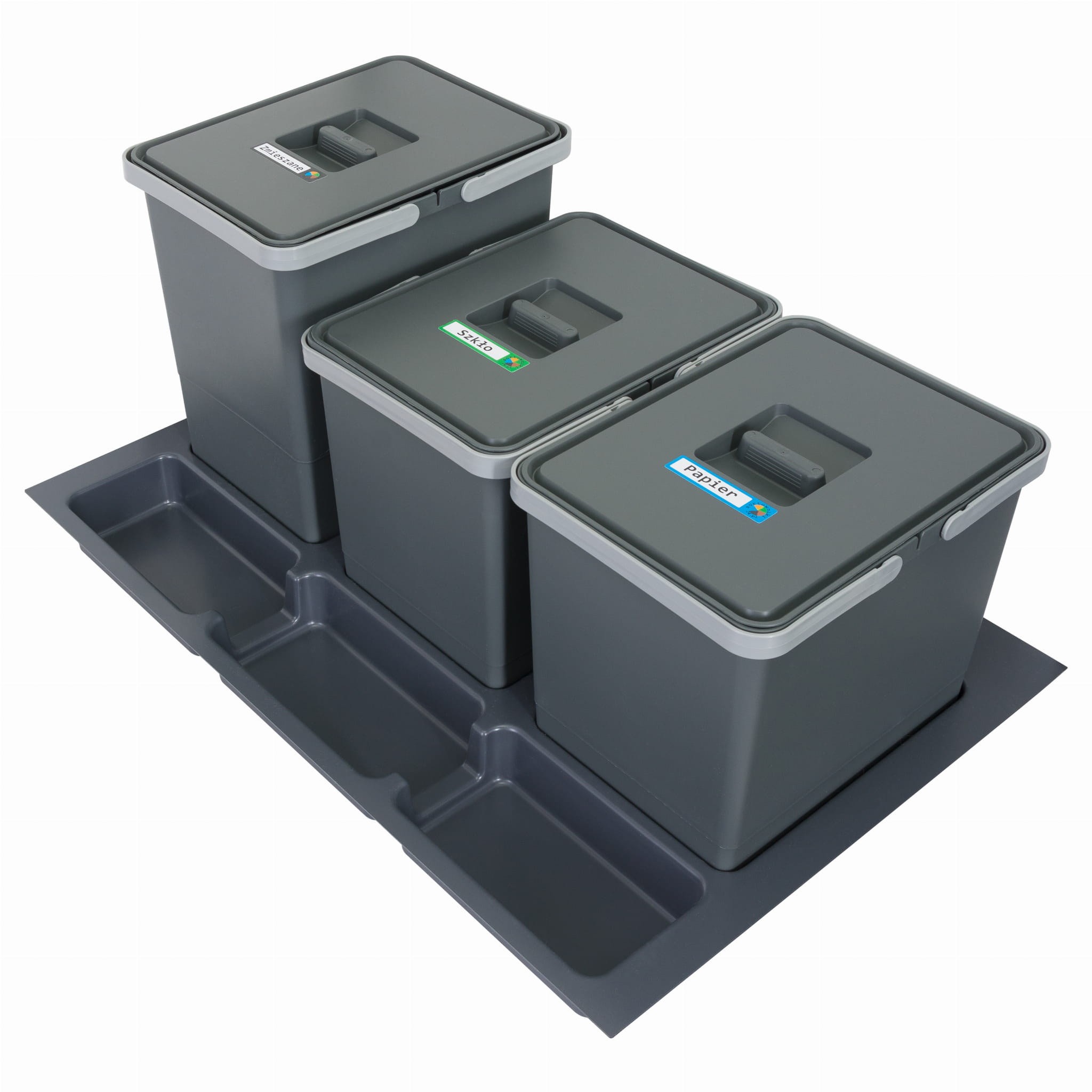 Dedykowany jest szufladom szafek kuchennych o szerokości 80 cm. Składa się z trzech pojemnych koszy - dwóch 15 l oraz jednego 18 l stabilnie umieszczonych na plastikowej tacce, wzbogaconej w trzy wbudowane w nią koszyki na gadżety kuchenne. Kosze te posiadają szczelne pokrywy, wytrzymałe uchwyty oraz nacięcia na powierzchni pozwalające na umieszczenie dwóch worków na śmieci.