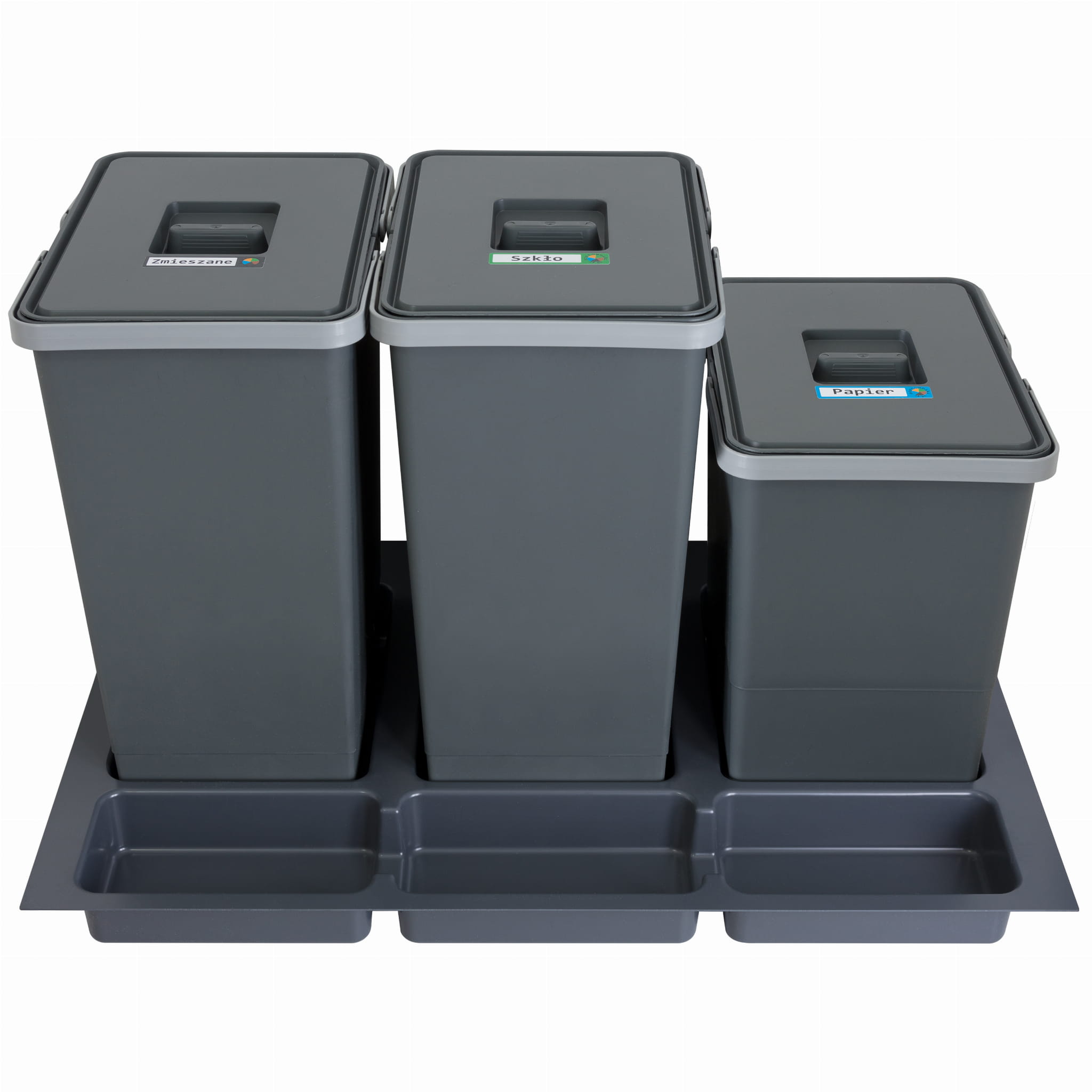 Sortownik śmieci FUTURE CONFIG 2x24 l + 1x18 l to wyjątkowy produkt wyróżniający się na tle konkurencyjnych produktów niespotykaną dotąd ergonomią. Zapewnia on wygodne segregowanie odpadów w szufladach szafek kuchennych o szerokości 80 cm.