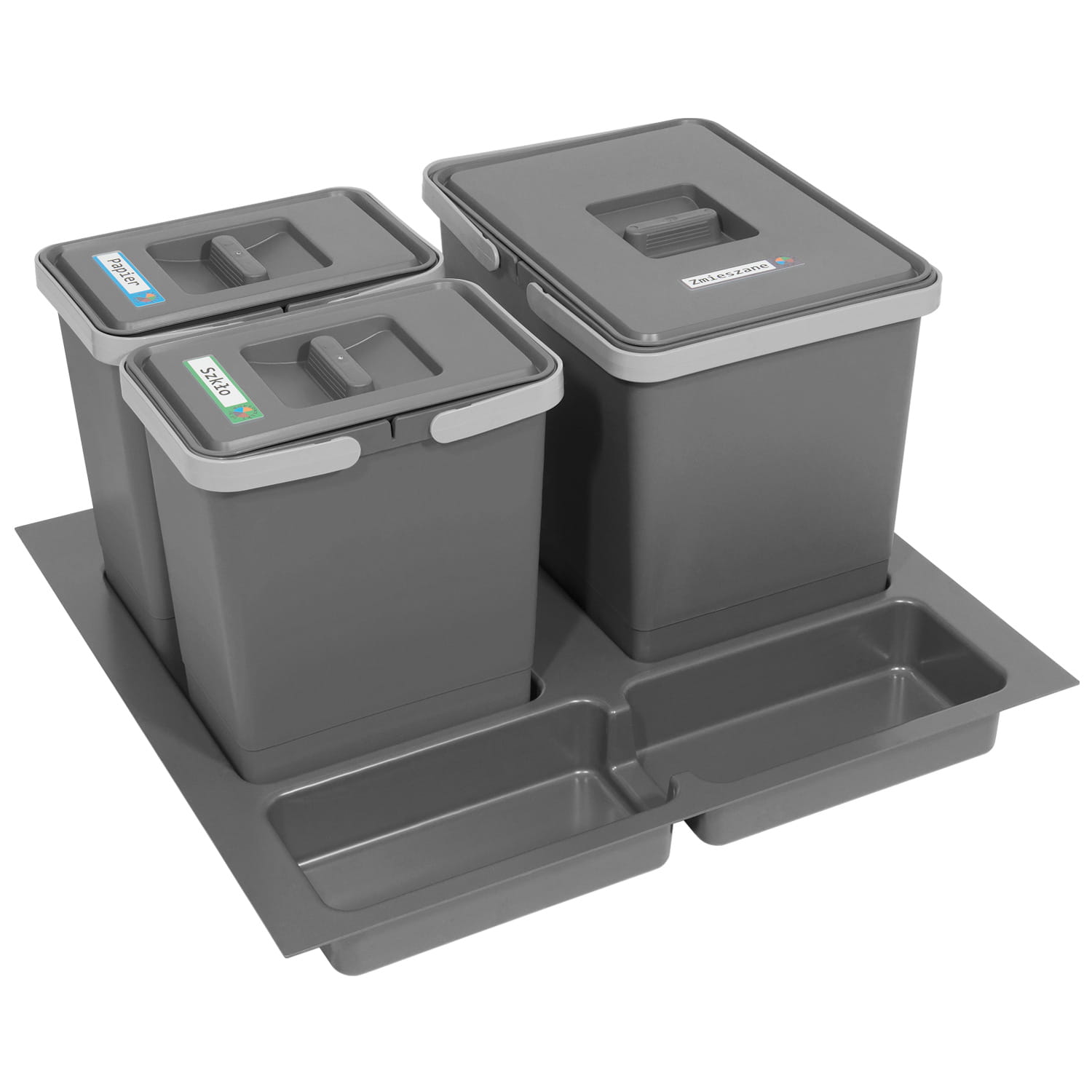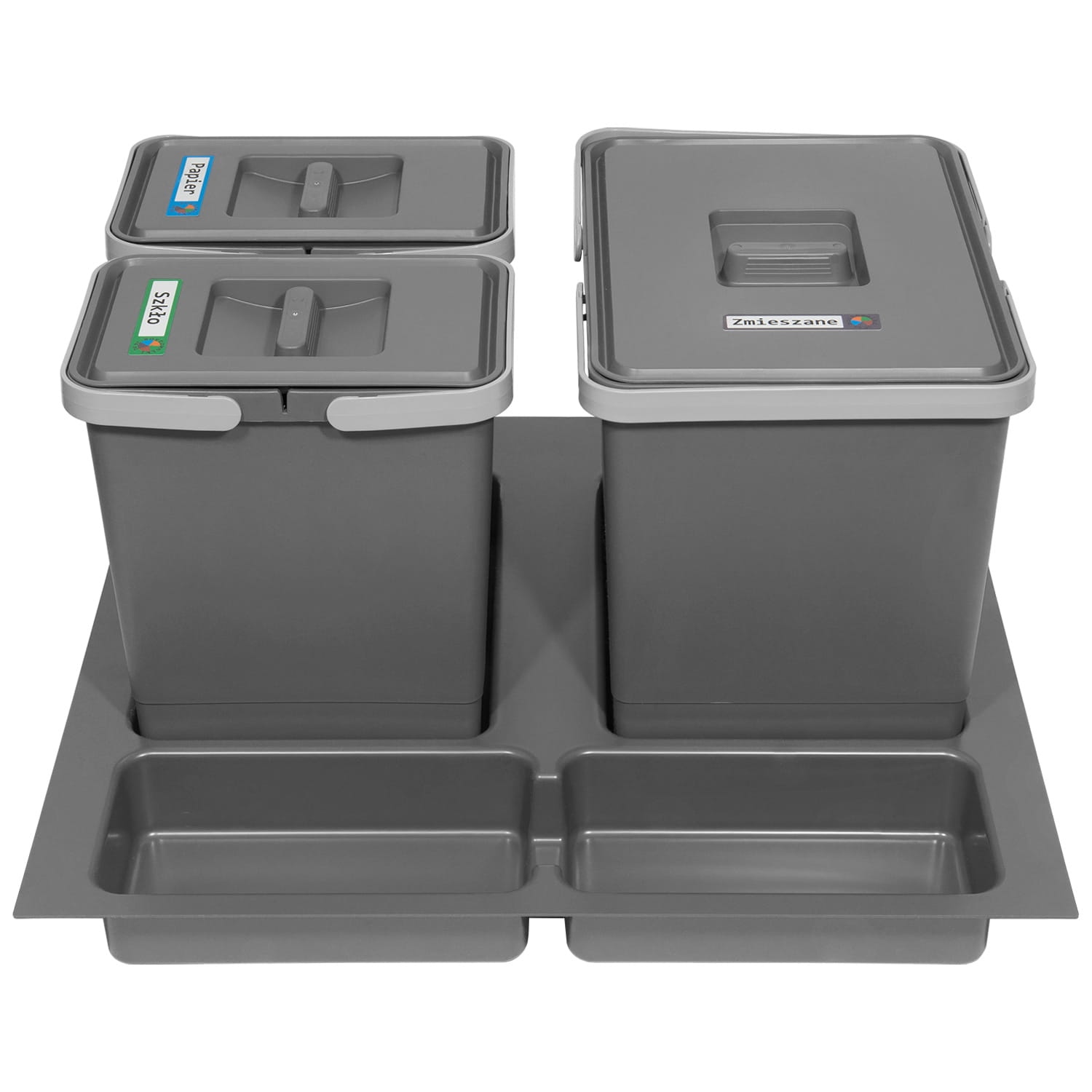 trzy pojemniki do segregacji: 2 × 7 l oraz 1 × 15 l (łączna pojemność 29 l)