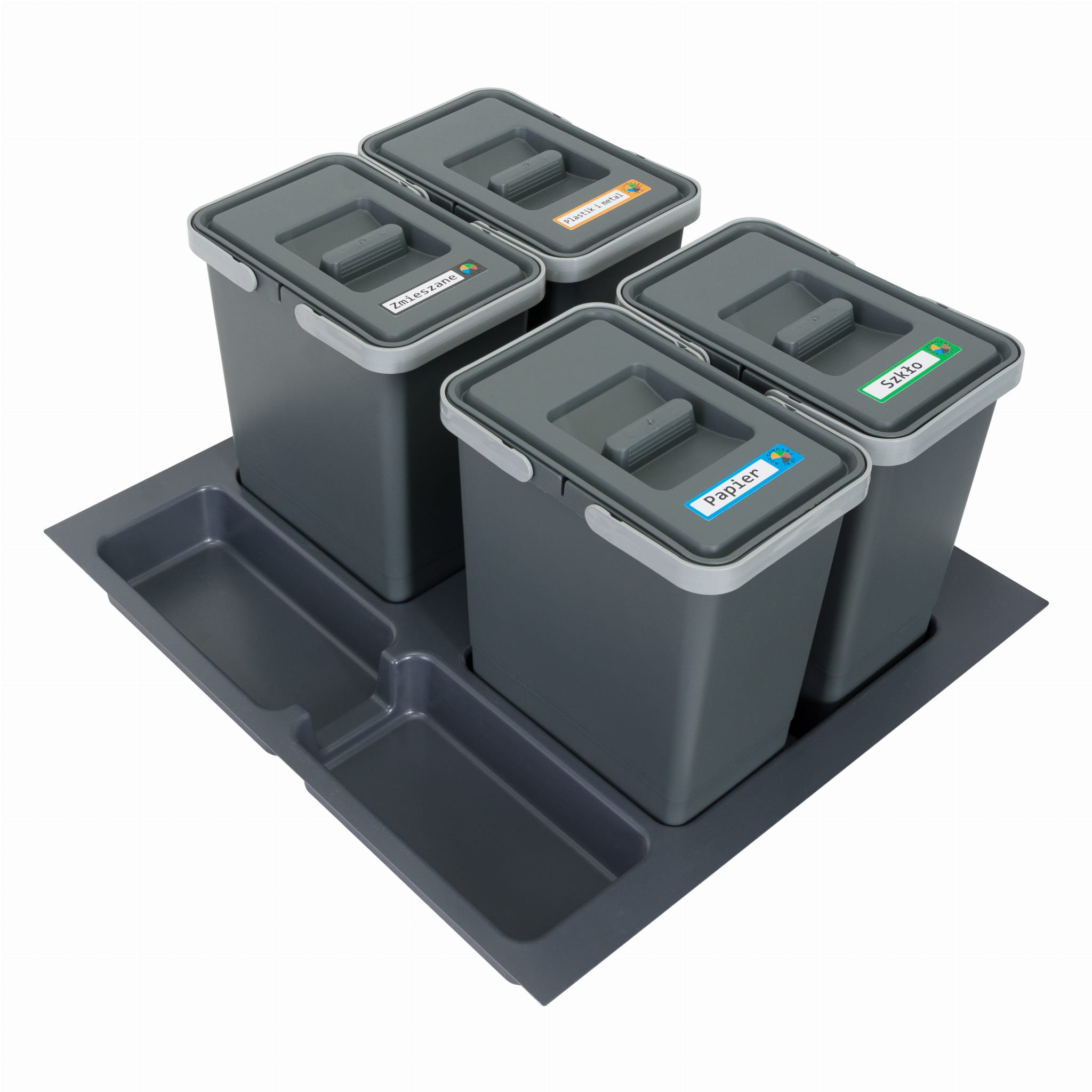 Sortownik śmieci FUTURE to praktyczny selektor odpadów przystosowany do montażu w szufladach kuchennych o szerokości 60 cm.