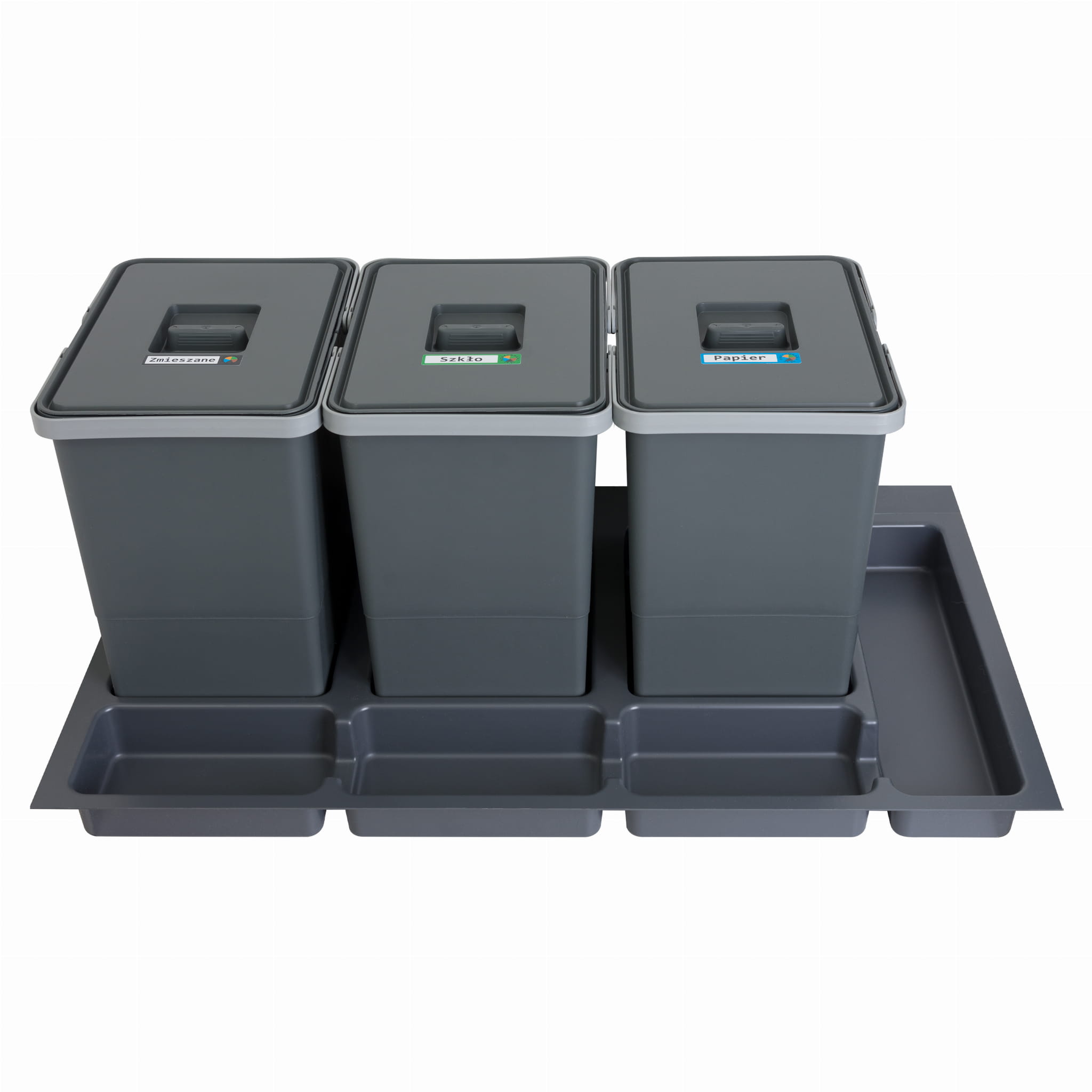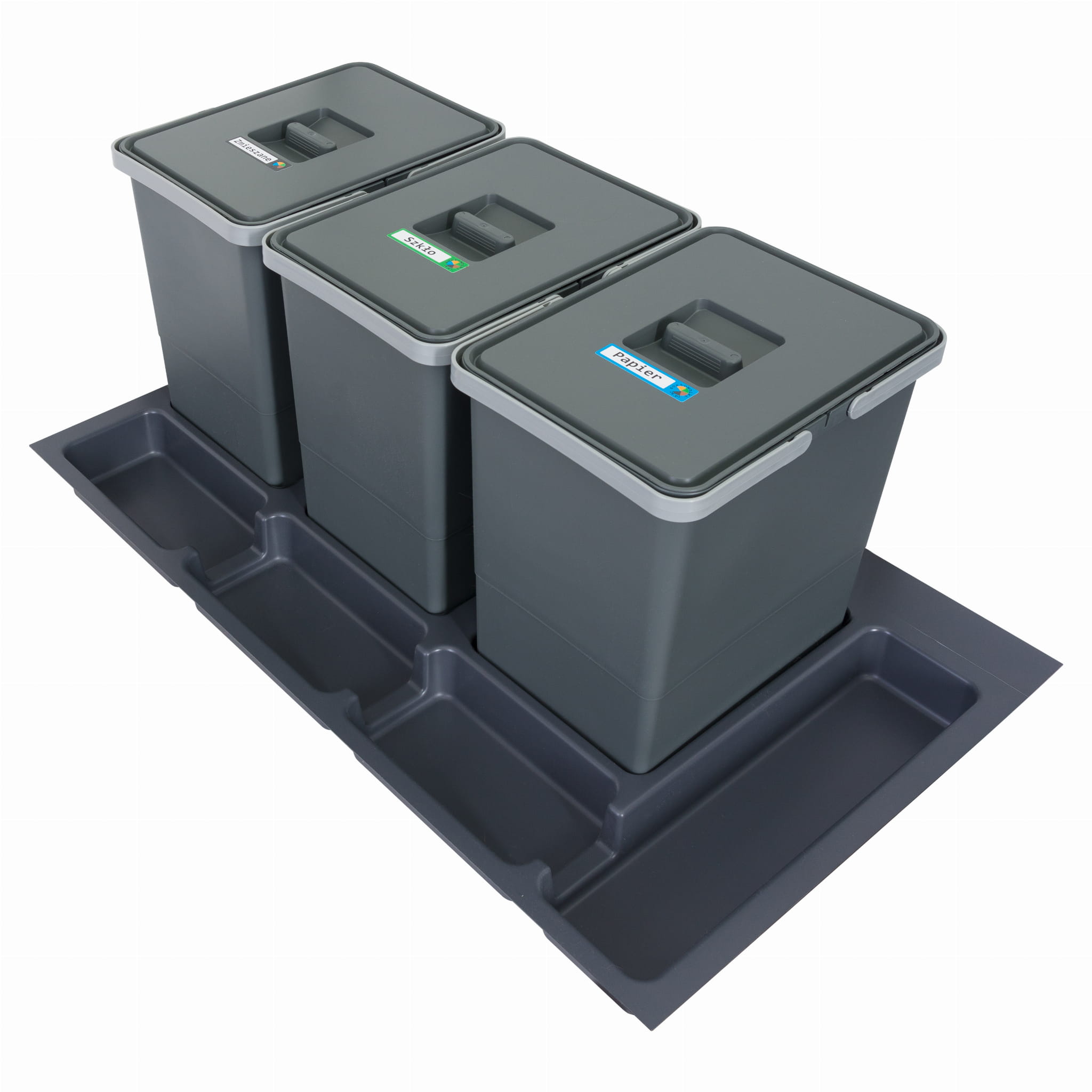 Sortownik śmieci SORTOWNIKI24 FUTURE FU343X1890ANTR3 o łącznej pojemności 54 l posiada: